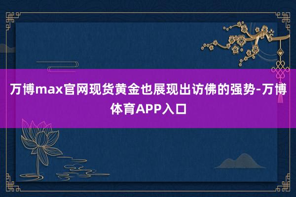 万博max官网现货黄金也展现出访佛的强势-万博体育APP入口